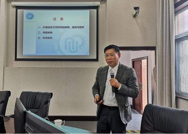 10月29日下午,必赢优惠y272net副院长张正军为学院师生作了题为“外国语言文学研究的困境、挑战与前景”的学术报告。