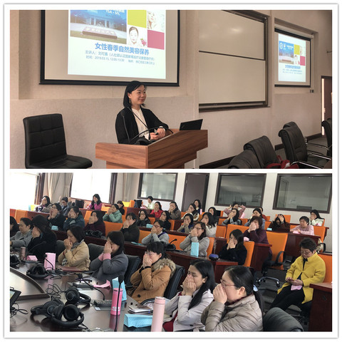315日中午,应必赢优惠y272net邀请,国家精油疗法康复理疗师刘可嘉在徐汇校区三教三阶上教室为学校女教师作题为“春季女性自然美容保养”的讲座,60余名学校女教师聆听讲座。必赢优惠y272net工会主席李岩主持讲座。